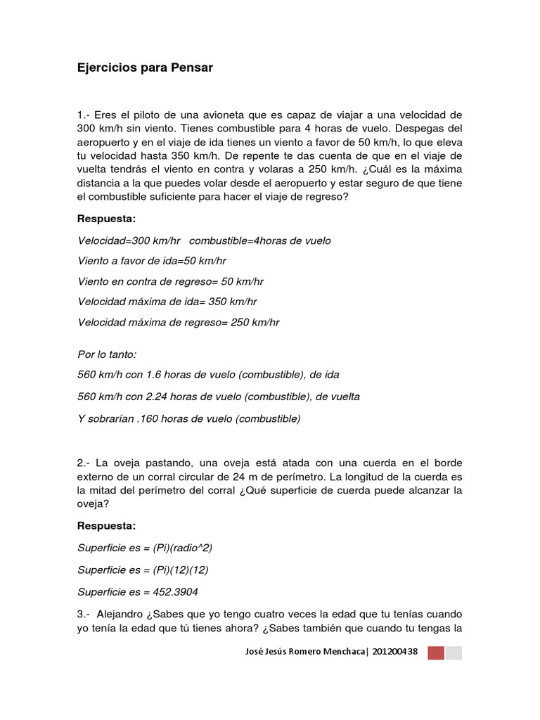 Ejercicios Para Pensar Con Respuesta : La Resolucion De Problemas Y El Uso De Tareas En La Ensenanza De Las Matematicas - El pensamiento es movimiento y el movimiento es parte del aprendizaje y desarrollo cerebral de los niños.